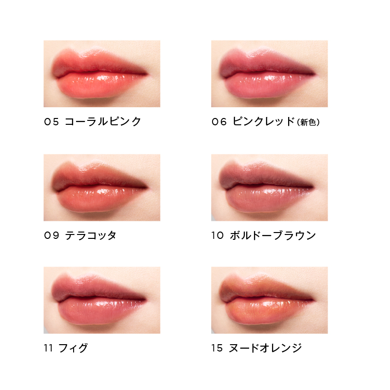 透明度の高いオイルに色を溶け込ませた処方だから、内側からじゅわっと発色したようにピュアに色づき、決して“濃く”感じさせない、透ける仕上がり。重ね付けで濃さも自由自在です。